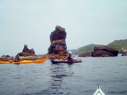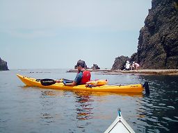 鴎が鼻の弁天岩。どこまで行っても鏡のようなベタ凪の海面が続きます